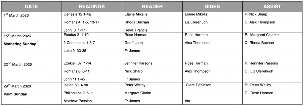 Chiddingly’s March rota is below, as well as being printed in the Chiddingly Parish Magazine.